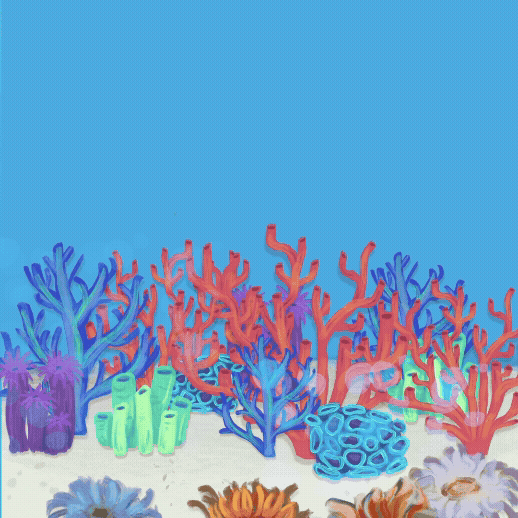 I created ocean backgrounds, frame-by-frame animated creatures, and coral that I rigged on the ocean floor. Together, I created an aquatic adventure :)